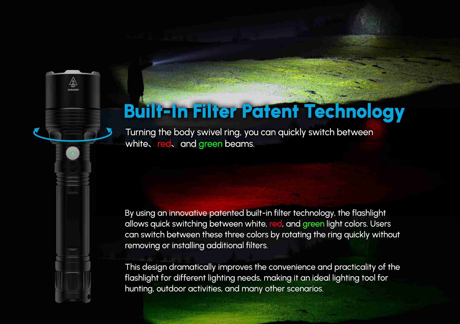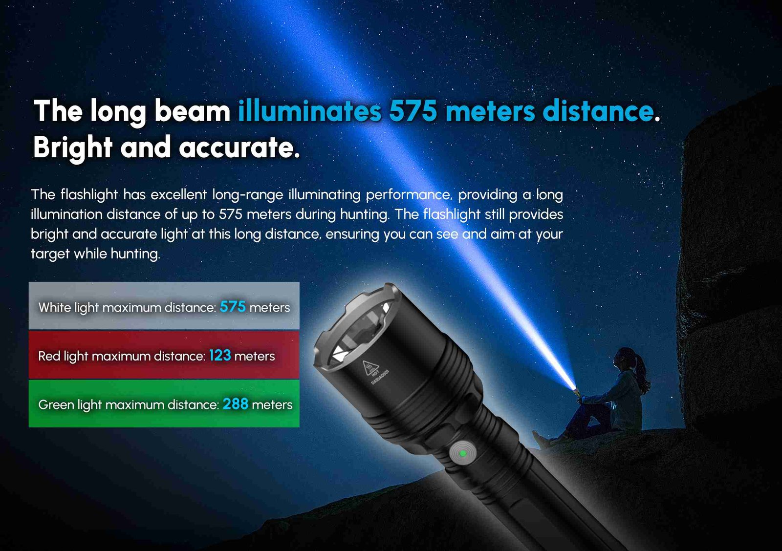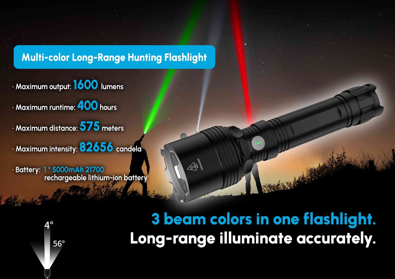 The Ridingoutdoor hunting light with max. 1600 lumen with 3 different colors , the best choice for hunting,  law enforcement search and rescue.