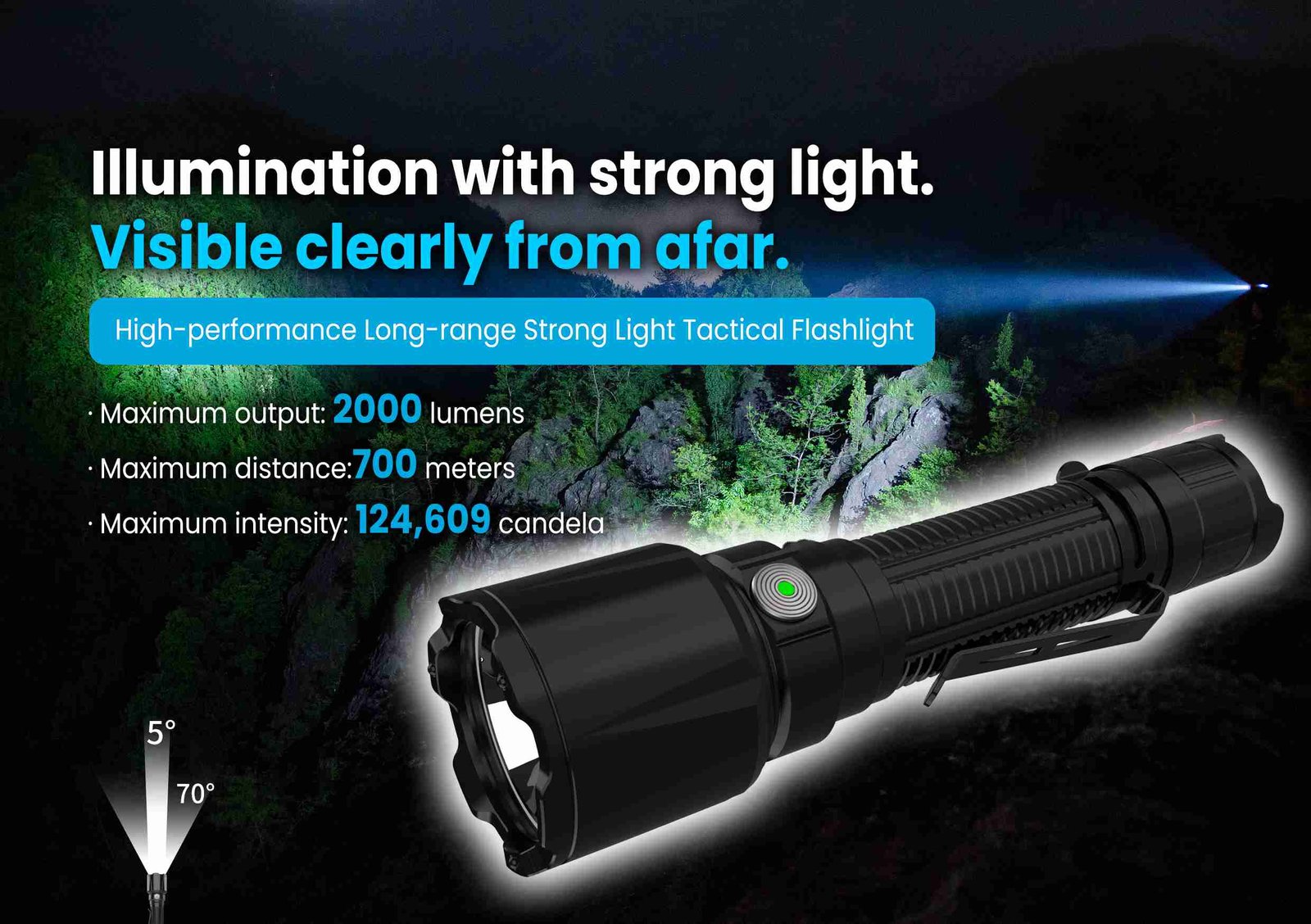 The Ridingoutdoor flashlight with max. 2000 lumens designed for search, law enforcement,adventure, exploring or outdoor activities.