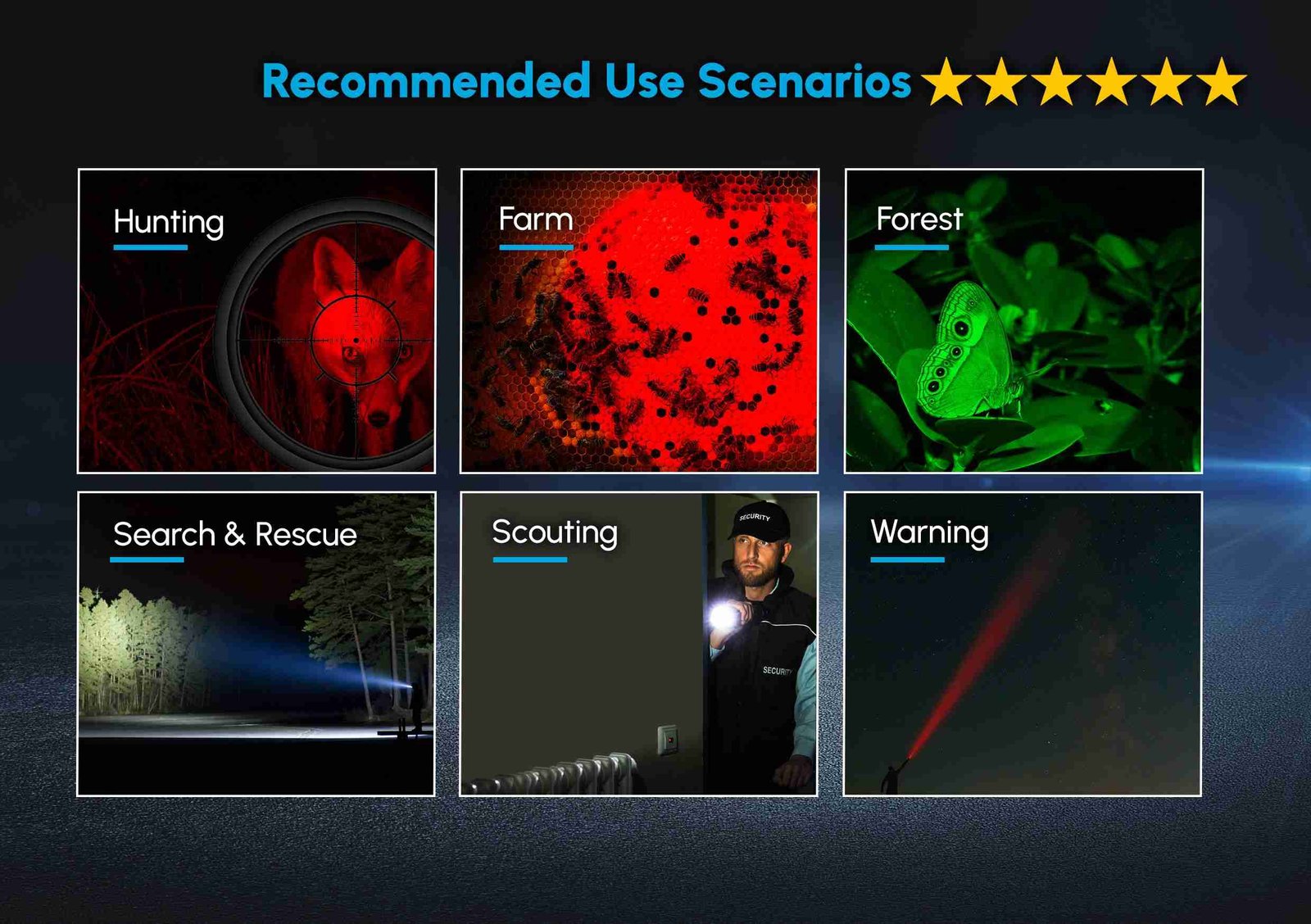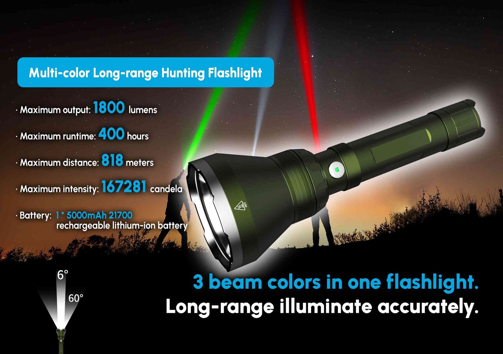 The Ridingoutdoor hunting light with max. 1800 lumen with 3 different colors , the best choice for hunting,  law enforcement search and rescue.